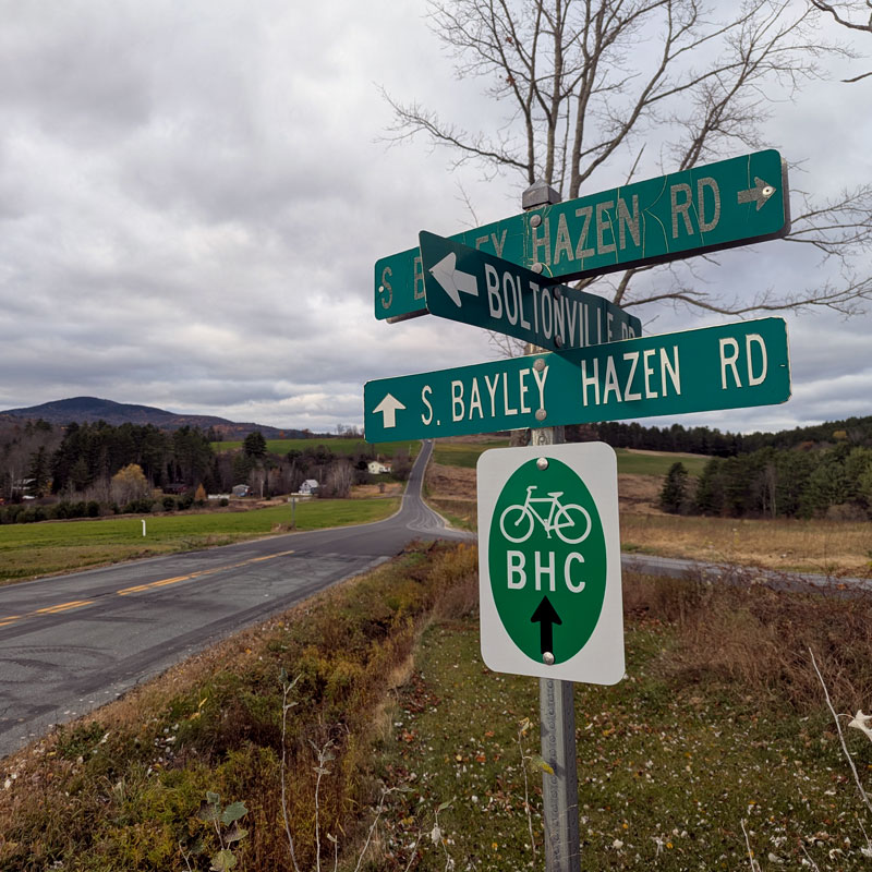 The BHC - Bayley Hazen Connector - is an on road scenic route that connects the Cross Vt Trail (Montpelier & Wells River rail trail) and the Lamoille Valley Rail Trail. It runs from the XVT trailhead in Boltonville up to the LVRT trailhead at the old depot building in Danville; on town roads through Newbury, Ryegate, Barnet, Peacham and Danville.