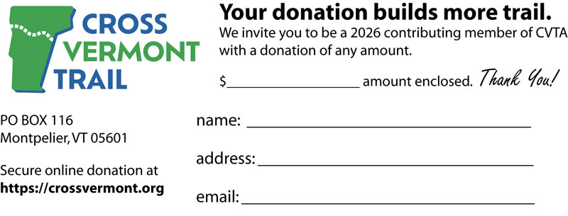 We take an active role in helping communities join trails into a regional network, with the Cross Vt Trail as the link among them.